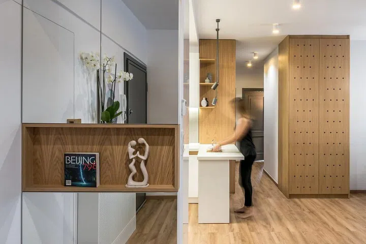This 1,011sqf apartment is home to a young family of four. It was designed by Greek interior design company Normless who created a casual and welcoming ambience by using a light colour palette and clean lines. Here are some neat tricks you can follow.