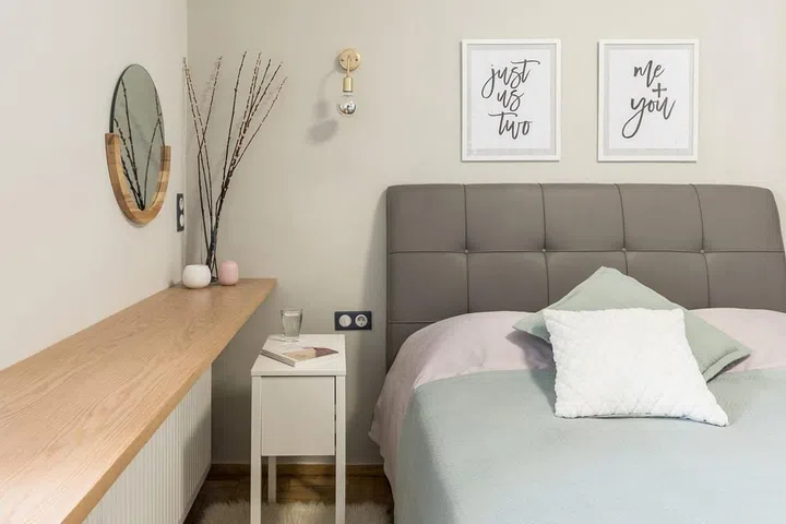 #5 Feel like there's no space to fit a dressing table? A long ledge and wall mirror will meet your needs without taking up floor space.