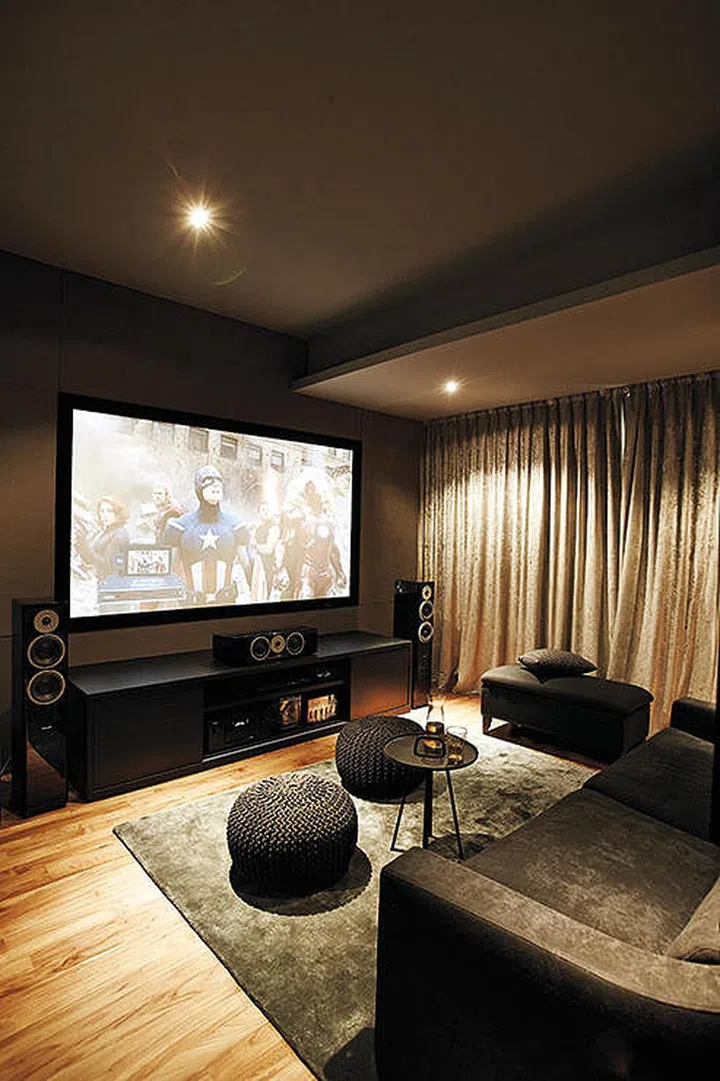 An indulgence they can have is the home theatre they always wanted, especially since the husband is a huge fan of music and movies. Maena designed the space using velvet-like drapery and fabric panels for a plush look that also helps with soundproofing the area.
