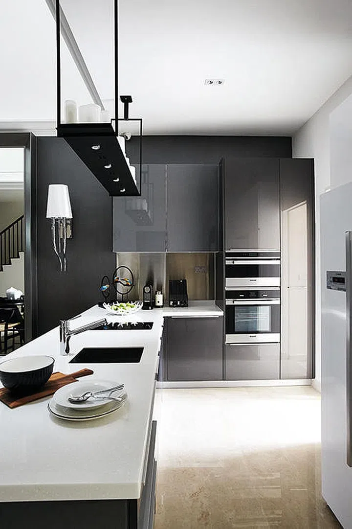 As the family "always eats home-cooked food", the kitchen is designed to be compact and efficient with its linear design.