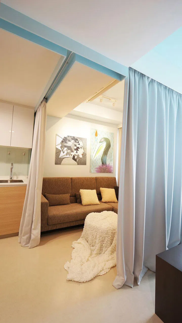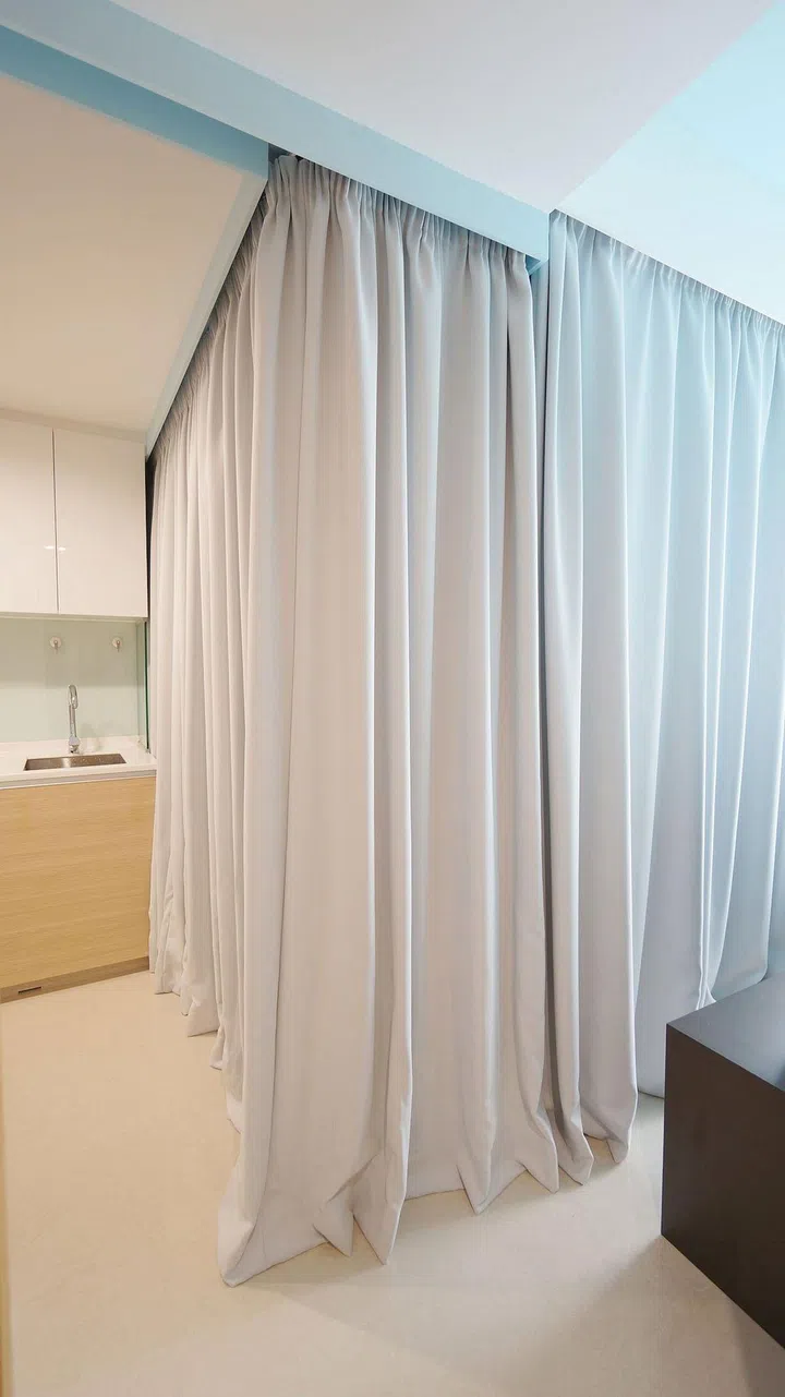 The solution that HUE D offered was simple yet incredibly versatile. Taking inspiration from boutique hotels in Hong Kong, the design team proposed the use of curtains to partition the spaces as and when needed.