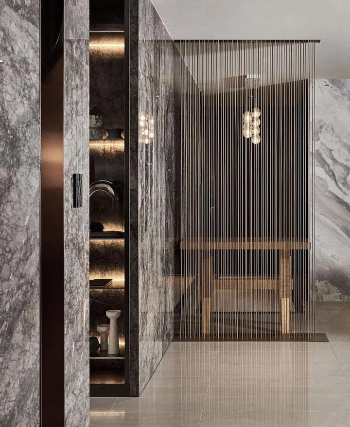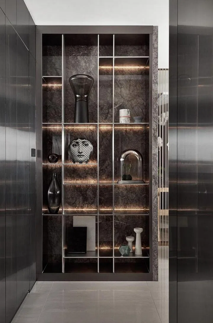 Metallic elements, from the trims to the lights and some of the wall panels help to inject a sophisticated and modern style to this classy look.