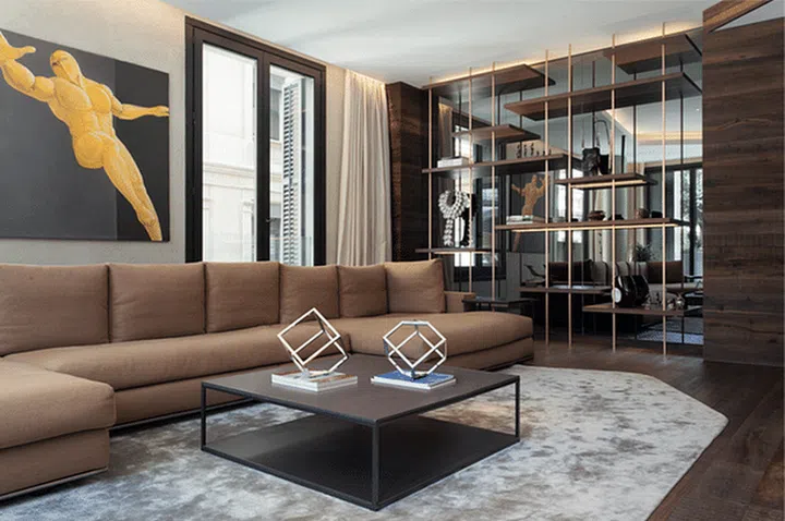 In a stylish avenue known as Passeig de Gracia in Barcelona, Spain, the look is luxurious and the architecture, arresting. In one of its buildings, this expansive second floor apartment that looks out to Gaudi’s iconic Casa Mila perfectly mirrors that vibe. Its interiors are a fluid expression of rich earthy tones and distinctive lines, conveying a picture of understated luxury.
