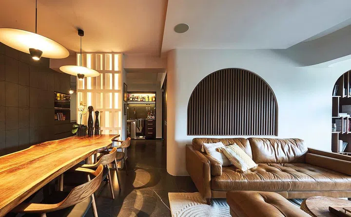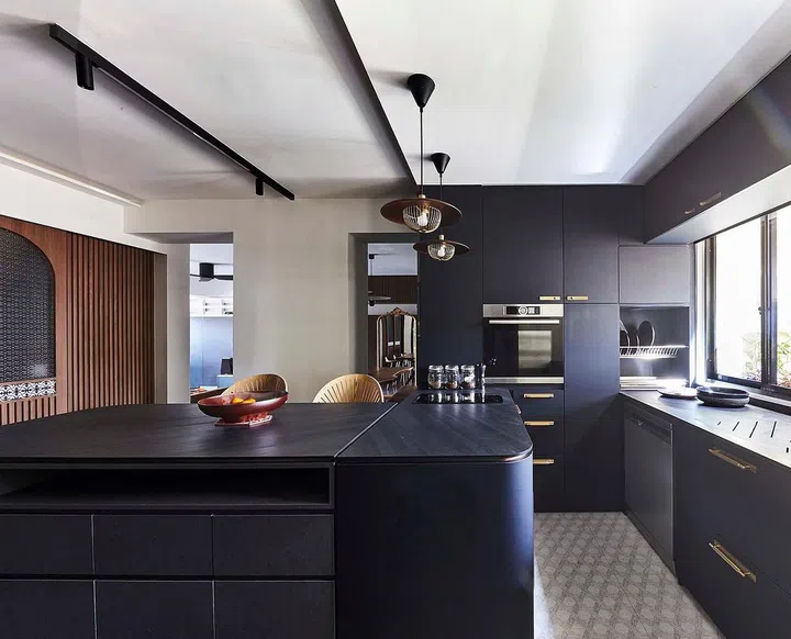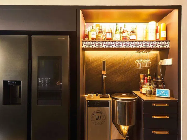 Mobile kitchen island, personal brewery, contemporary Peranakan details and clever spatial reconfiguration are some of the highlights of this executive apartment in Bedok designed in 2022 to cater to a large family.