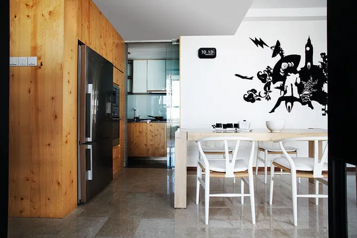 Working in tandem, homeowner and interior designer brought warm, natural elements to the contemporary interior of this condominium in Tanjong Rhu.