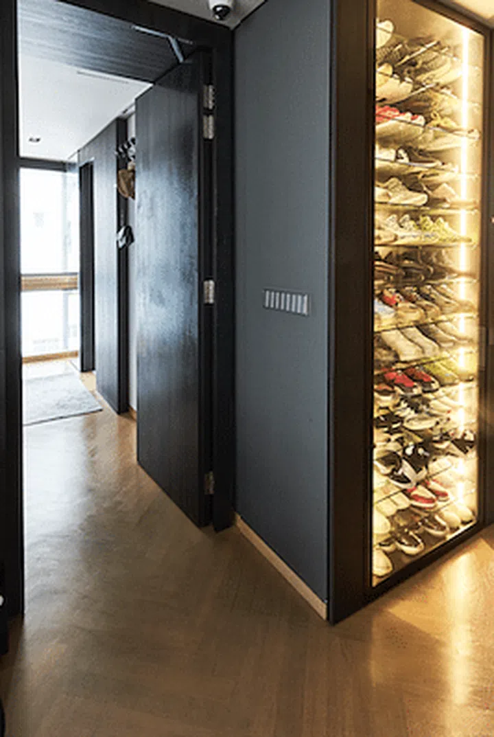 A recess in the wall has been put to good use as a display for Woon’s collection of shoes.