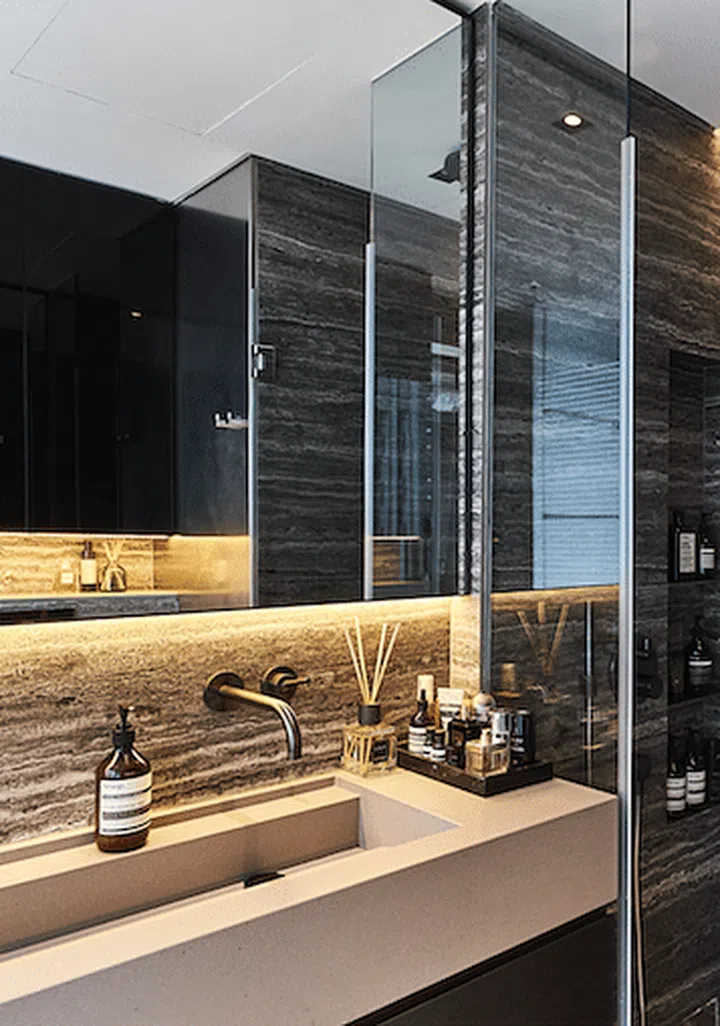 "The apartment is about 15 years old and was showing signs of wear. The flooring in the whole apartment is new, except for the master bathroom’s. I replaced all the sanitary fittings and redid the vanity counters and shower areas. I also gutted the kitchen."