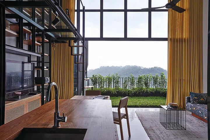 Penthouses have a lot to live up to, being synonymous with luxury and glamour. This unit on the 24th floor of a condominium block, located at Upper Bukit Timah, fulfils the expectations with knockout vistas of greenery, sleek interiors and enviable outdoor living space. The homeowner approached a friend of 20 years, Mark Yong from PIU Design.