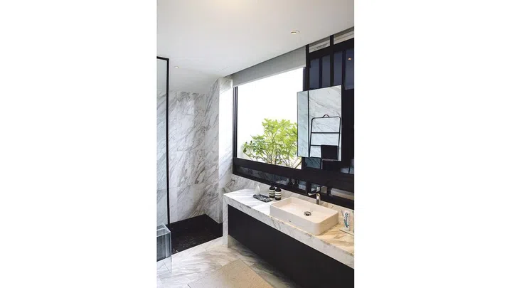 In the master bathroom, a window by the sink opened up to a planter on the outside. But this meant that there were no walls to hang mirrors. Mr Kurniadidjaja had his contractor install mirrors that hang from the ceiling.