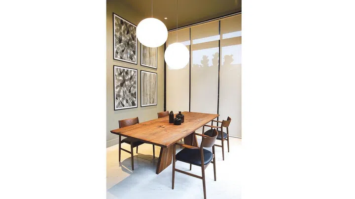 Some of the walls are adorned with art work, but not the conventional kind. They are instead, framed pieces of washi paper, which Mr Kurniadidjaja bought while on a business trip to Japan. "I like the traditional element of paper," he says of the washi paper. The table is a Hakama dining table from Conde House.