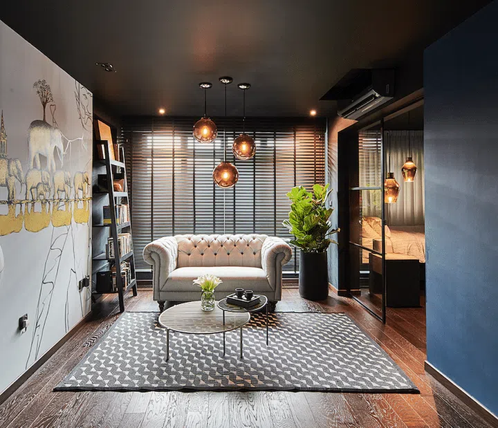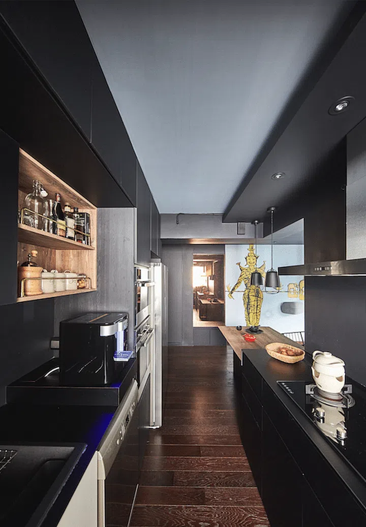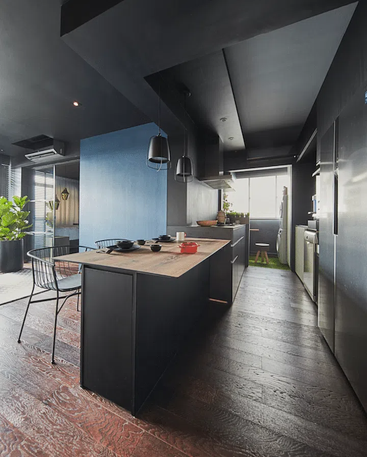 Dark colours not only create a relaxing and cosy atmosphere, but it can also unify different decorative elements. I wanted the interiors to exude a bold presence. The colour selection process was quite challenging because there were many considerations for contrast and balance. I learnt that a good mix of different textures such as wood, metal and fabric is also important, to create a sense of balance. I even replaced the main door to achieve a rusted effect, to contrast against the engineered dark wood floor I got from Wood Culture.