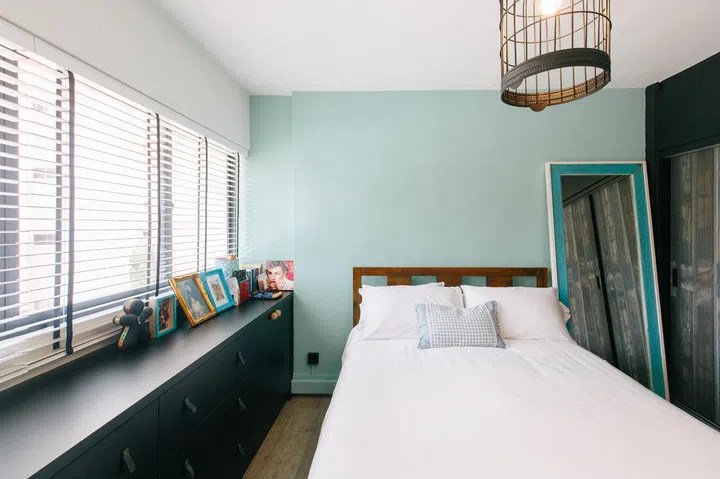 They also enjoy the luxury of a balcony area, where bamboo blinds add to the overall look alongside the retro grilles that remind of olden-day Singapore.