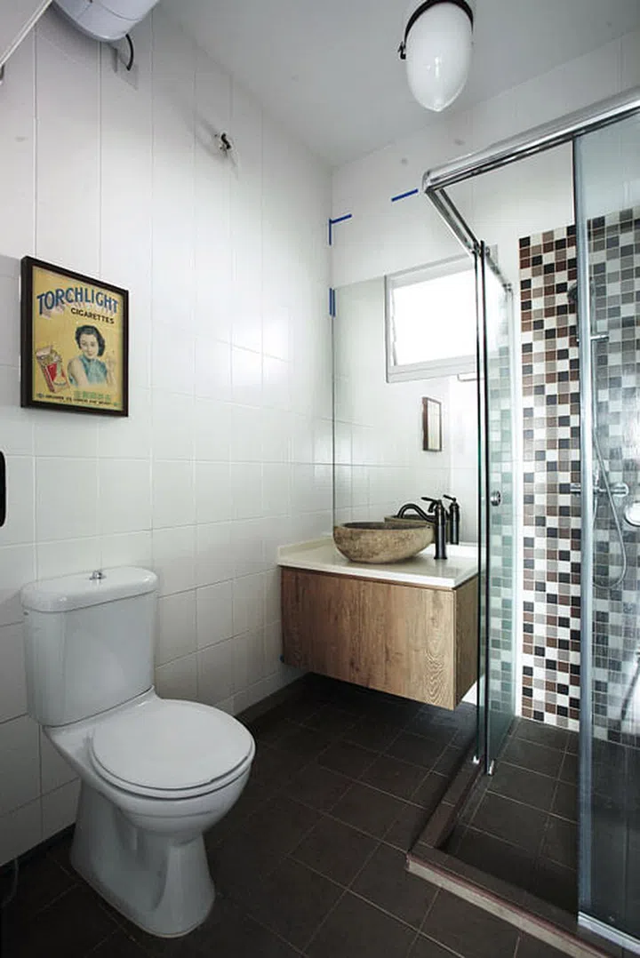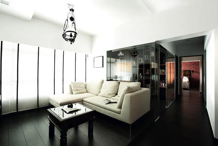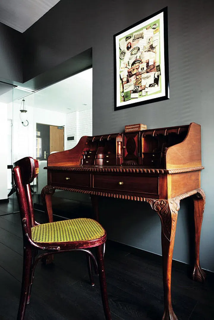 The homeowners — a couple — worked with their designer from Distinctidentity to create a cosy, charming space which features rustic English countryside influences and a touch of local nostalgia. The glass walls of the study visually enlarge the living room and allow much-needed light to enter the space.