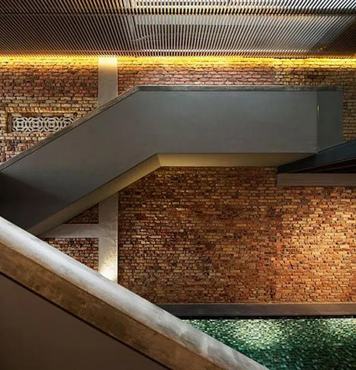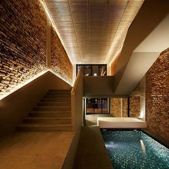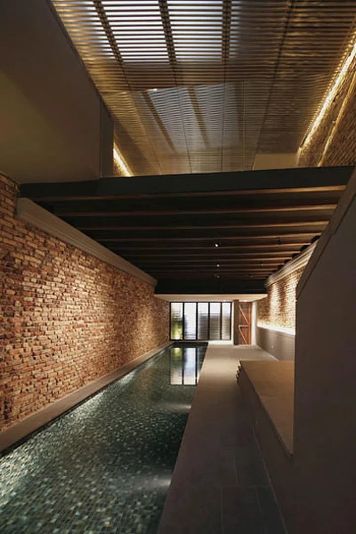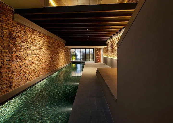 In a bold design move that celebrates the unique architectural characteristics of Singapore’s colonial-era shophouses, the studios incorporated a striking indoor pool that spans the entire length of the heritage building. This distinctive feature pays homage to the traditional narrow layouts typical of conservation shophouses while adding a contemporary twist.