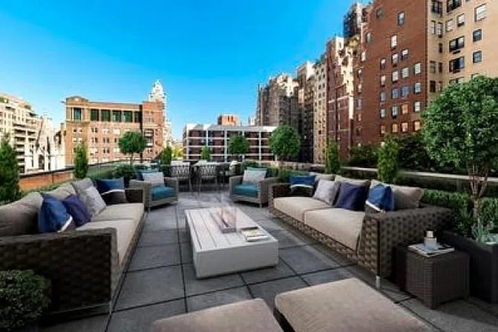 The rooftop terrace is the place to be in the evenings, where the homeowners get to enjoy breathtaking views of Manhattan.