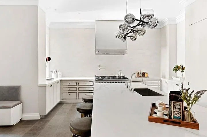 Home cooks will definitely fall in love with the white calacatta marble kitchen counter, equipped with state-of-art appliances from brands, such as Gaggenau and Miele.