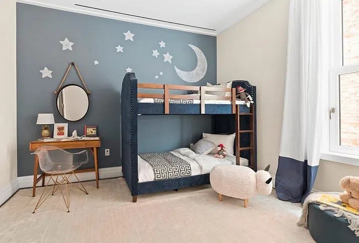 A second bedroom for the children comes with a bunkbed and an accent wall coated in chalkboard paint so the children can express their imagination freely all over the wall.