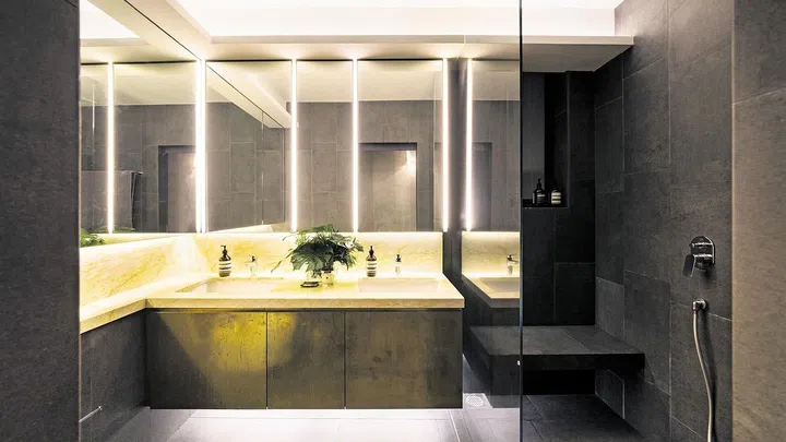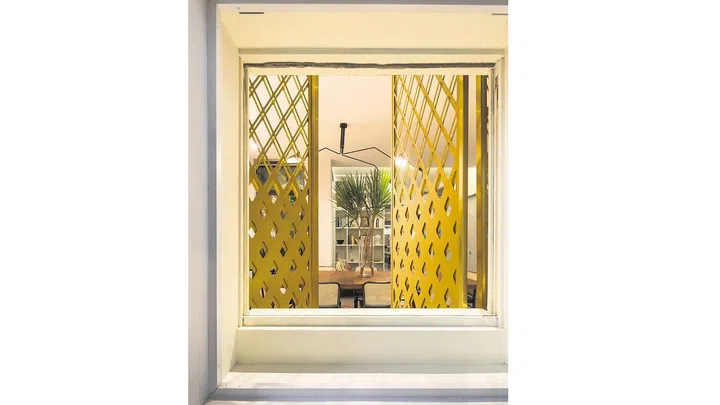 In Tiong Bahru where most of the SIT flats have more conventional window grilles, this ground-floor apartment has grilles with a golden patina. The brass screens, placed behind four large windows, and mounted on aluminium and steel frames, form a diamond pattern. On some days, those who walk by just see these screens, and if they are lucky, the screens are opened and they get a sneak peek into the apartment. “It is quite amusing sometimes to watch people casually walk past, then retract their steps and look into the apartment,” says the owner, who works in branding and advertising. “I don’t really mind it.”