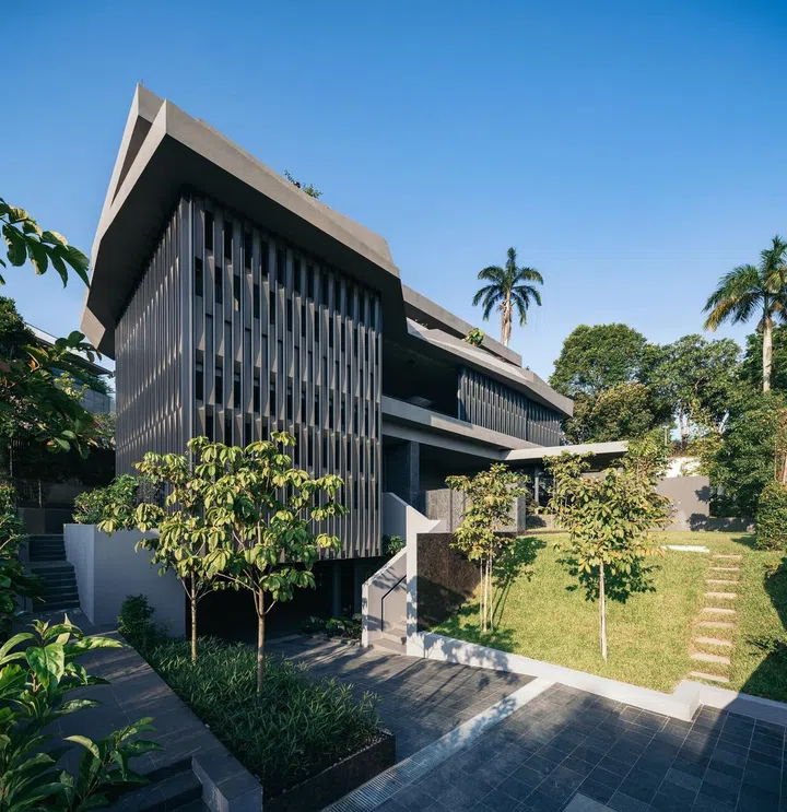 The site - a triangular plot on a sloping land was a challenge Lim had to take on when designing the house.