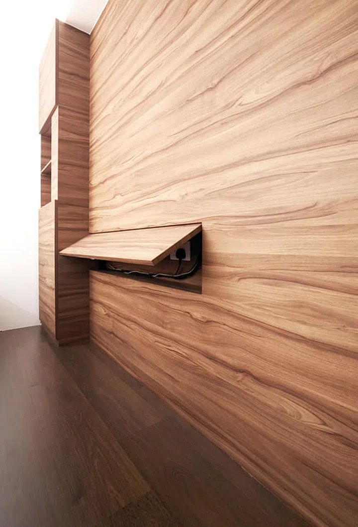 Pre-installed hidden wiring will allow a TV to be placed in the bedroom in future, without the need for unsightly outlets.
