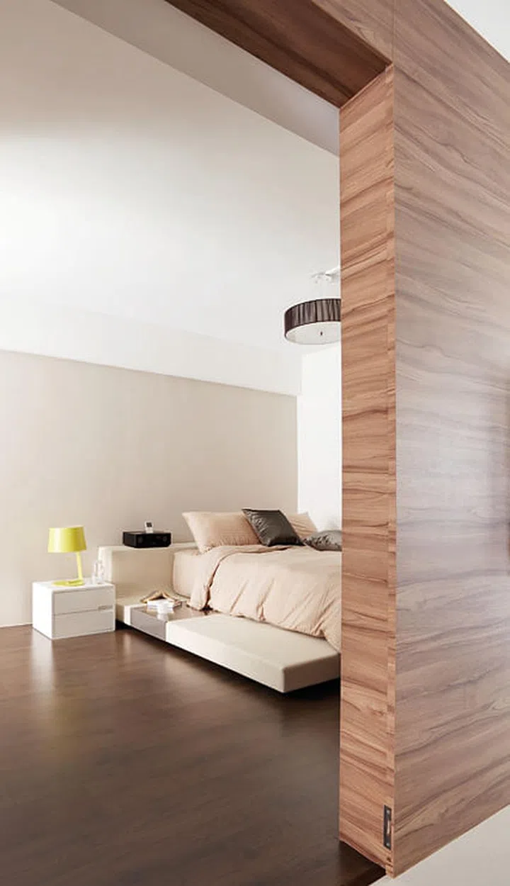 An accordion-type door opens the study to the living area, drawing more sunlight from its windows.