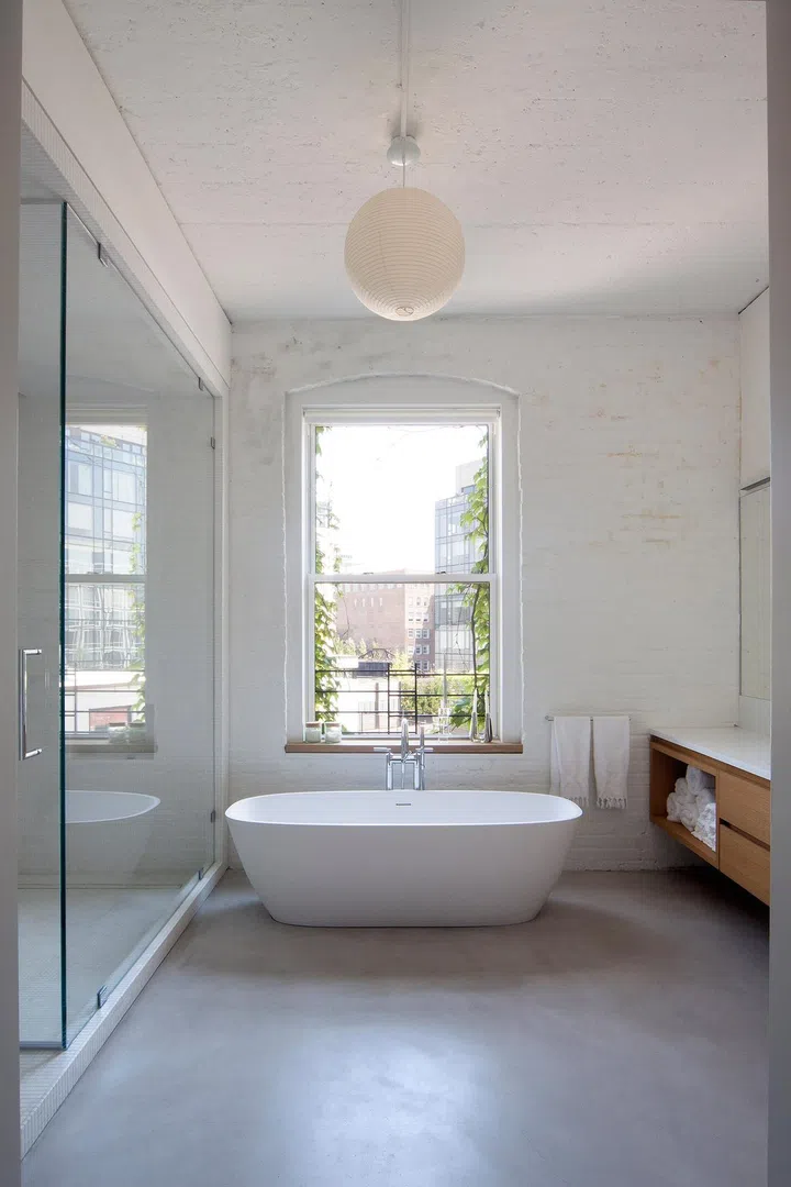 House Tour: Calming white, wood, & concrete Duplex apartment in Tribeca, New York City