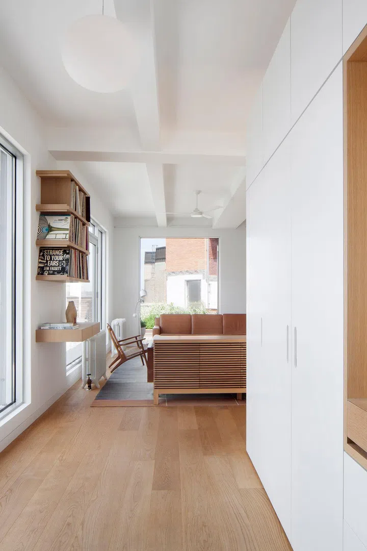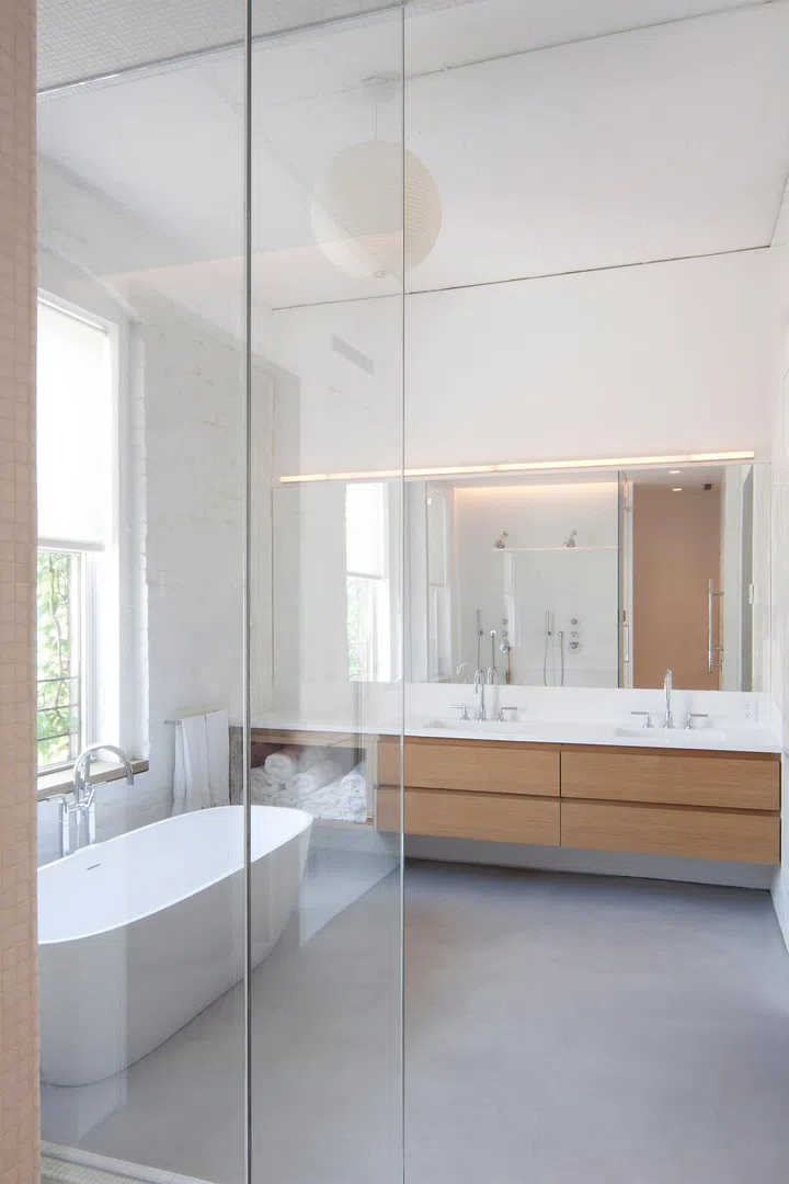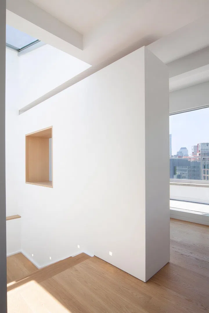 According to the design team at Space4Architecture, this duplex apartment in New York was designed with only three materials, “White plaster walls, oak for both floors and millwork, and smooth concrete floor, helps creating a very luminous space, giving it an almost ethereal flair.”