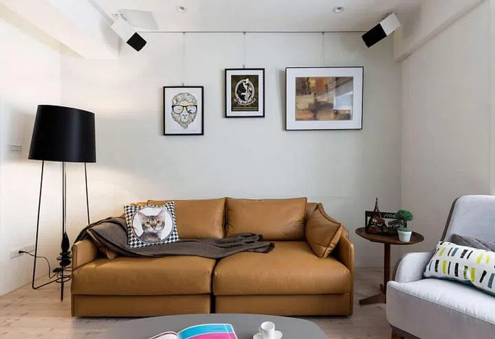 Notice how the artworks on the wall also feature colours picked off from the elements in the room, ranging from black to white to beige.