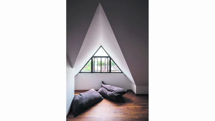 The pitched roof in the guest room gives the space a lofty feel. PHOTO: DANIEL CHIA