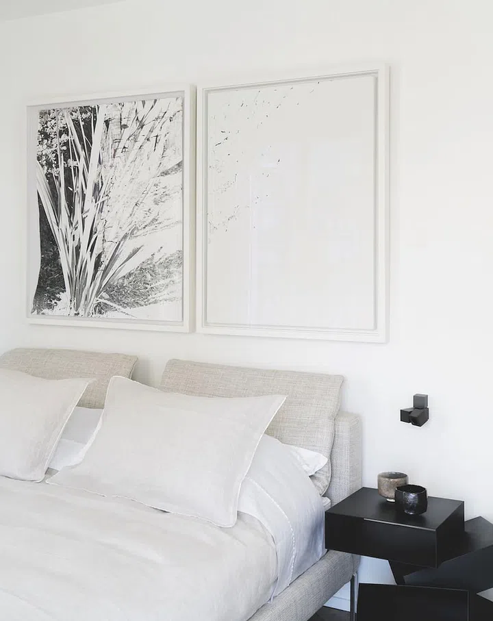 The soft colour palette of the furniture and overall space form an invitation to focus on the art pieces that add touches of surprise and humour, such as the Richard Prince one in the living room that says “My parents wouldn’t take me to Disneyland. They told me Mickey Mouse got eaten by a cat”. “Deep inside, we are big kids and always will be,” smiles Missir.