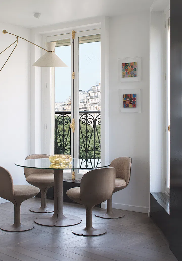 As the interior designer recalls, it was far from easy to find the perfect place. “We searched and viewed over 100 premises all around town,” he says. What made him fall in love with this particular one? “The sun orientation; the way natural light propagates across the entire space, and the fact that the apartment is located in a corner, on the fourth floor, which is a rarity in this particular arrondissement.”