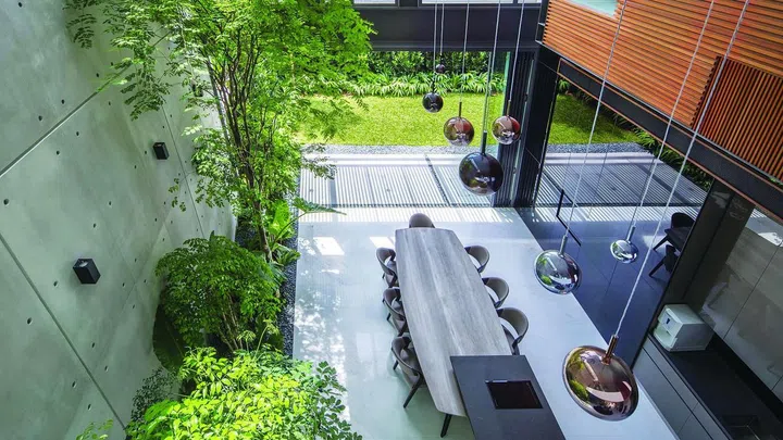 Because of this, the interiors feel bright and spacious, and the two metres of lost space is hardly noticed. "Not many clients will do this, because most want to maximise the use of the land," muses Mr Quek.