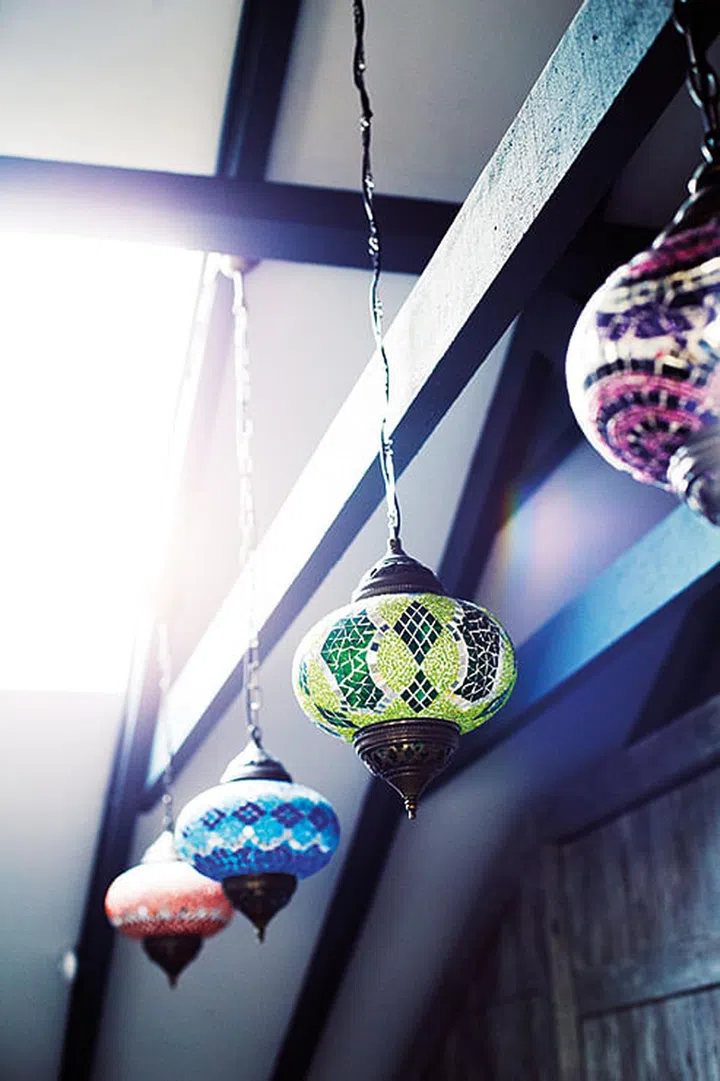 Jade handpicked all the lights in the home, including these beautiful Turkish lamps she found overseas. Each lighting fixture tells a story of their travels and adventures, creating constellations of memory throughout their living spaces.