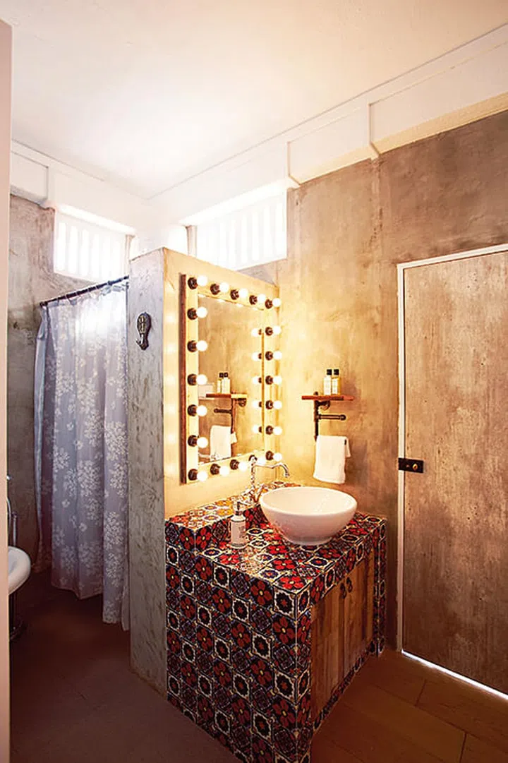Brightly coloured Peranakan-style tiles were added to the counter to bring some life to the raw concrete. This thoughtful nod to Singapore’s architectural heritage creates a visual bridge between the building’s past and present.