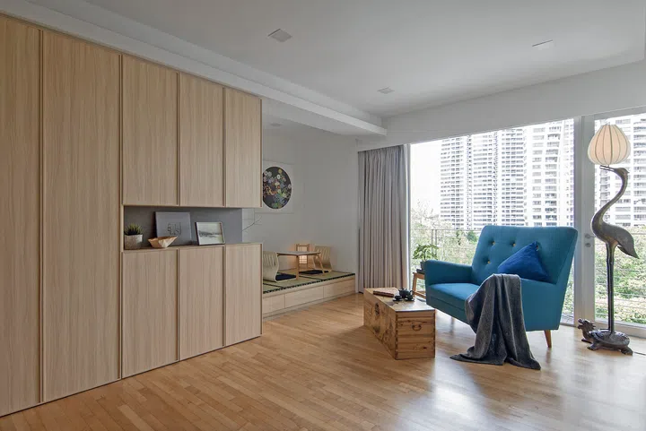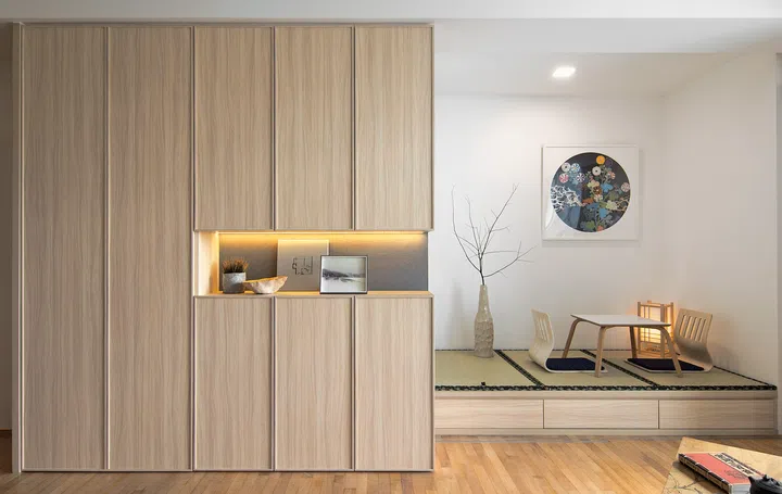 Japanese decor often champions clean lines and a stripped-down simplicity - and this one-bedroom condominium apartment at Farrer Road with a footprint of 786 sq ft is evocative of just that. A professional in the healthcare industry who goes by Ms Khoo, the home owner tapped KNQ Associates to recreate a home that mirrors her fondness for the pared-back aesthetic of Japanese decor.