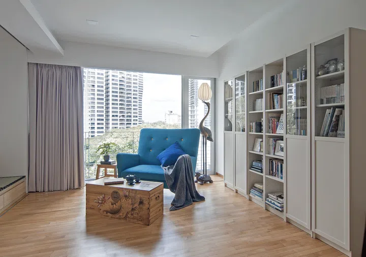 “It’s a dramatic change from what she liked before, when she approached us a decade ago to do up her previous home in a colourful, retro style” shares interior designer Stanley Tham of KNQ Associates.