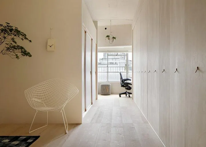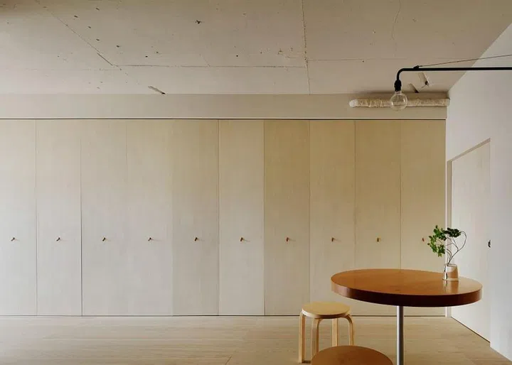 Japanese designer Hiroaki Matsuyama, founder of Minorpoet, took inspiration from the traditional building technique of a Japanese home to design the spaces in this apartment.