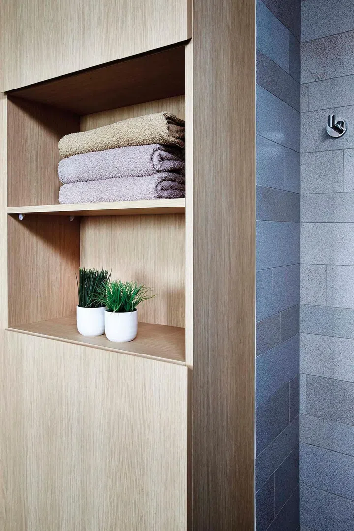 Design director Jeremy Lee, along with his designer Therdnapa C. from Box.id Studio, tapped the storage potential of the walls and awkward corners, supplementing them with some cleverly designed custom furnishings, too.