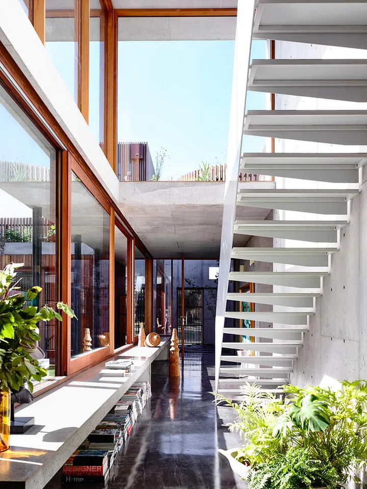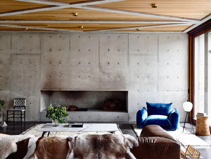 Designed by Australia-based Auhaus architecture studio, with help from client and concreter Damien Oliveri and his artist wife, Prudence Caroline, this stunning home shows us how industrial style can be luxurious, too.