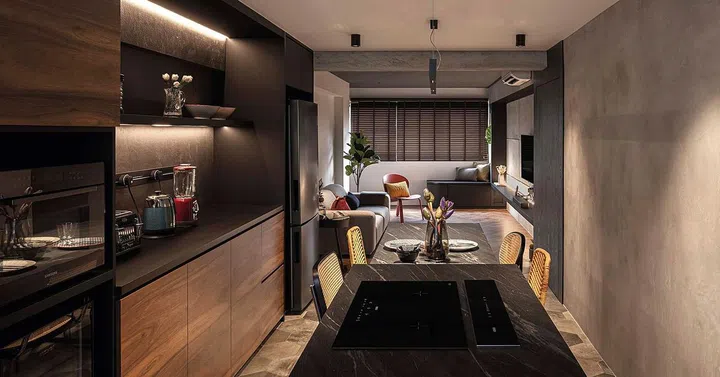 House Tour: Major reconfiguration for this dark minimalist three-room HDB at Marine Crescent