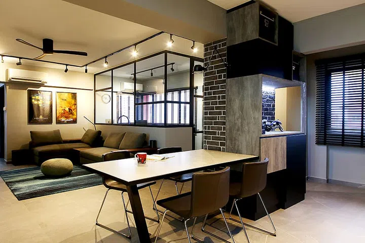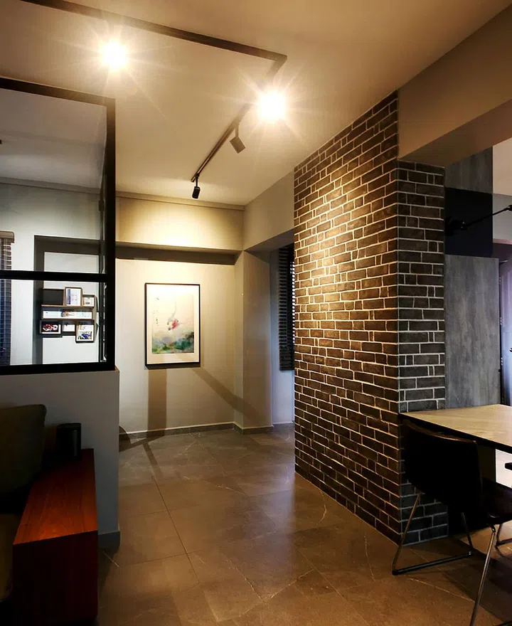 For structural walls such as the column in the living room, Kelvin had them clad in bricks for an industrial-style, loft-inspired touch.
