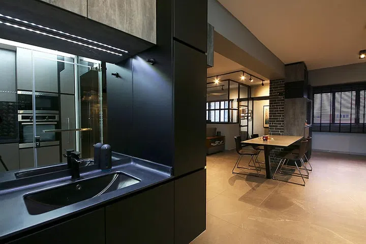 House Tour: Metallic accents and a dark palette gives this five-room HDB flat a futuristic vibe