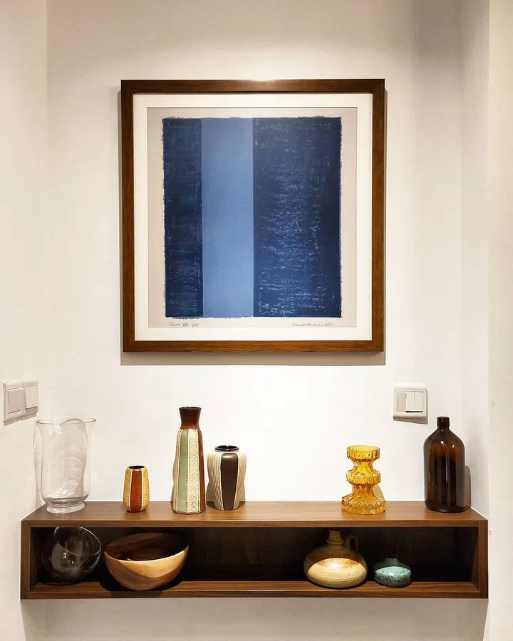 About their display items and decor accesories at home, J-sen shares: "we love the unique glaze on our collection of vintage pottery, many of which cannot be replicated because of the ban on certain toxic glaze chemicals such as some types of selenium.