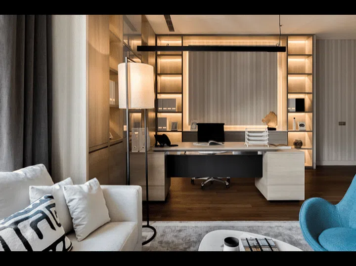 The client’s study exudes a sense of formality with straight lines running throughout.