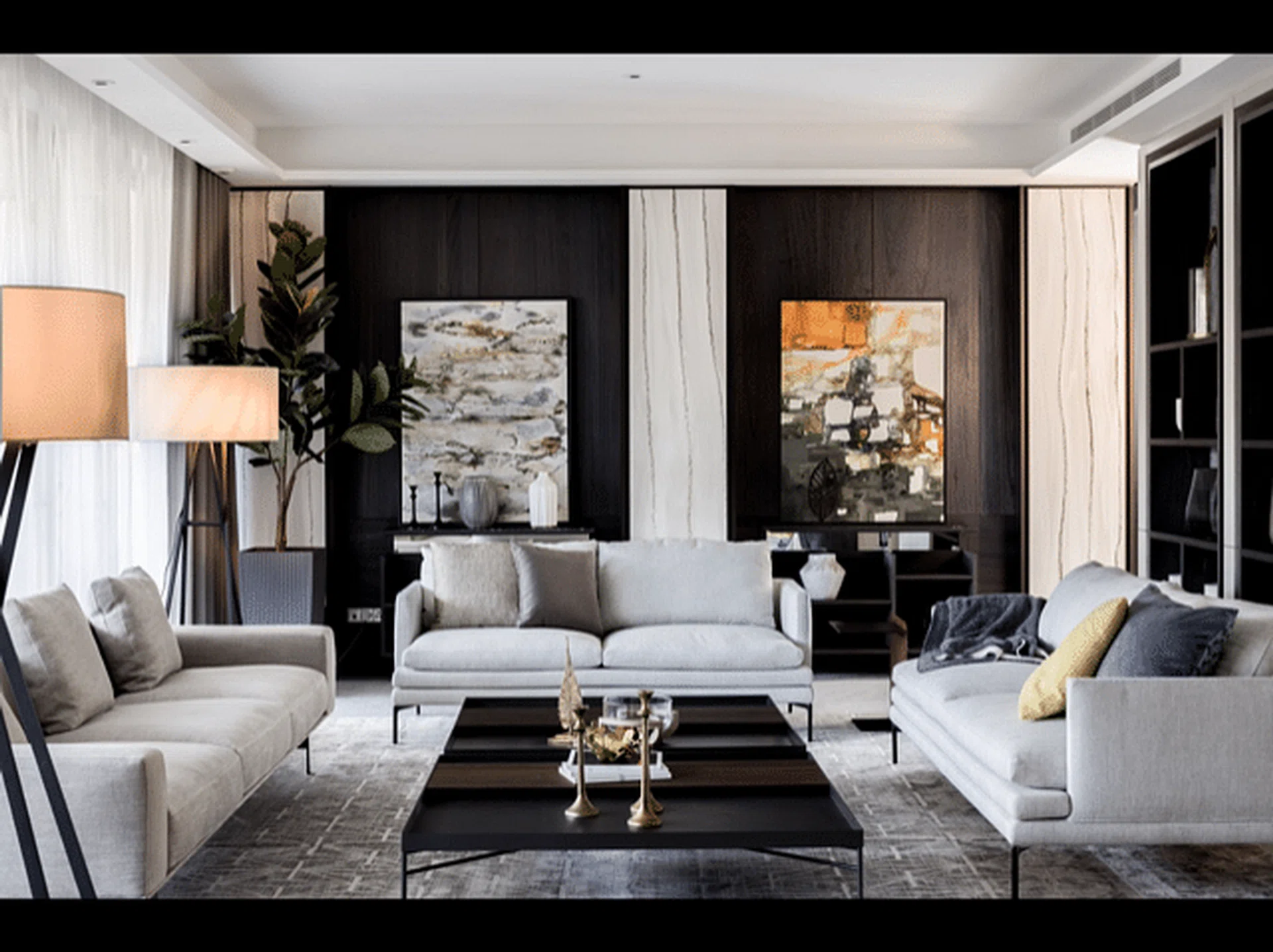 To further add in visual play and depth, two pieces of specially selected artworks complete the setting, helping to anchor the living room sofa as well.