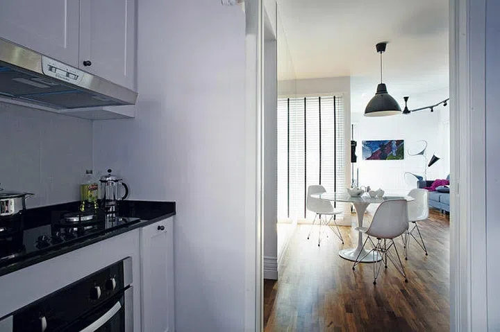 Panelled wall trimmings and skirting form the bones of the apartment, giving it a characteristic European feel.