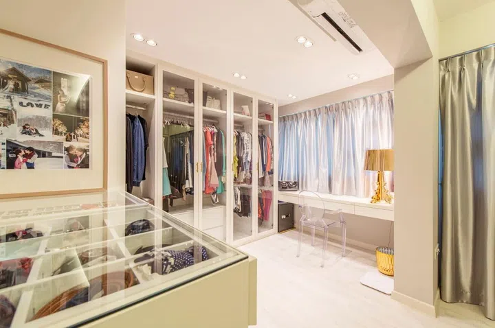 The couple wanted a walk-in wardrobe so the wall between the master bedroom and a common room was hacked away to combine the spaces.