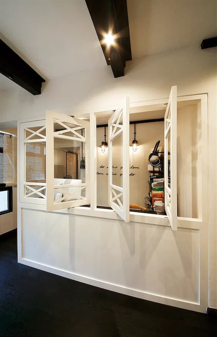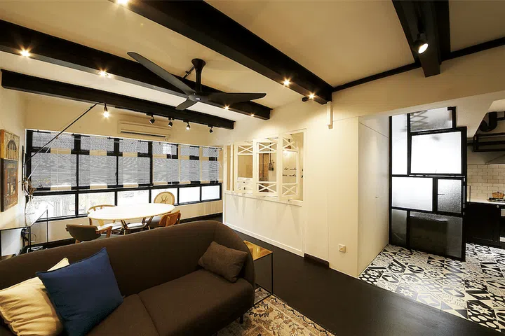 House Tour: Black and white 4-room HDB in Bishan with modern ceiling beams