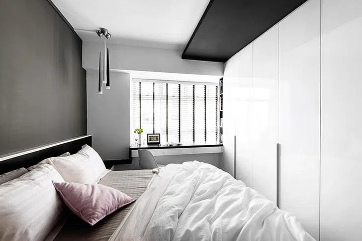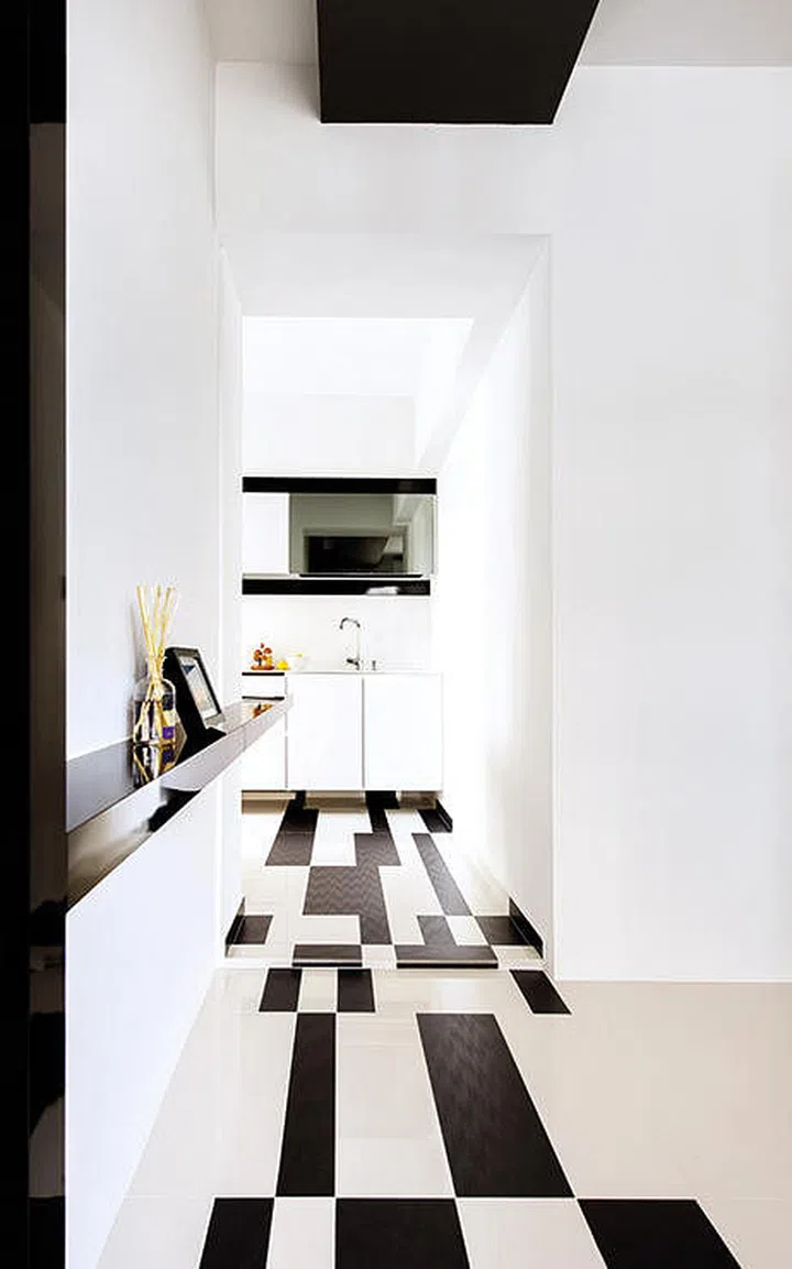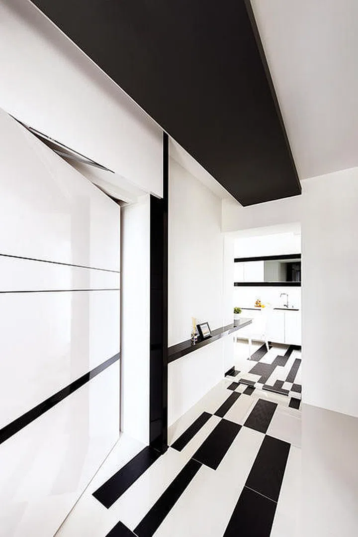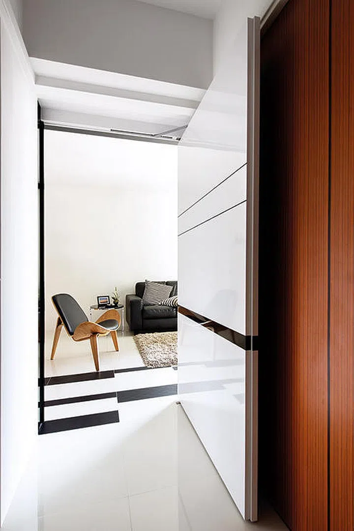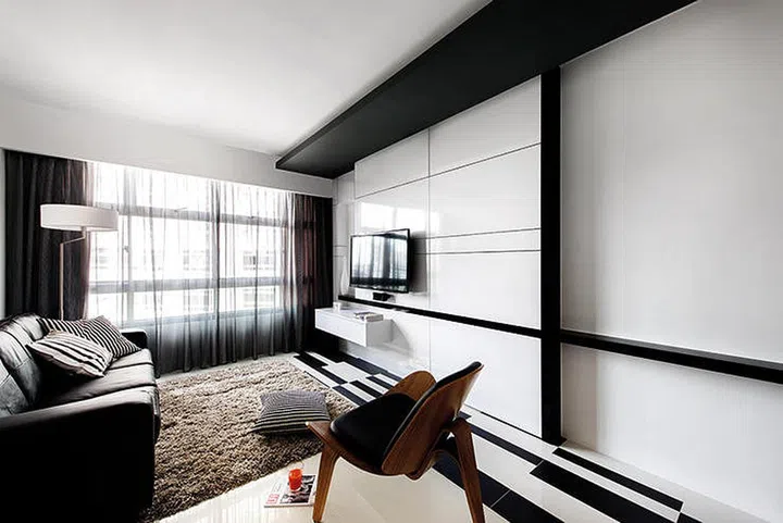 The austere colour scheme and sleek finishes transform this humble HDB unit into an elegant abode.