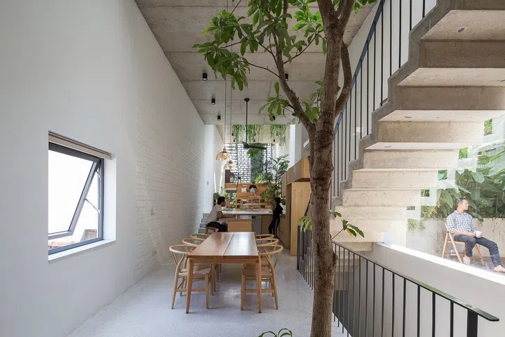 One of them is this four-storey residence, an industrial-style brick-clad structure that stands out from its neighbouring shop houses. Its width of 4.2m and length of 35m is typical for tube houses in Vietnam.